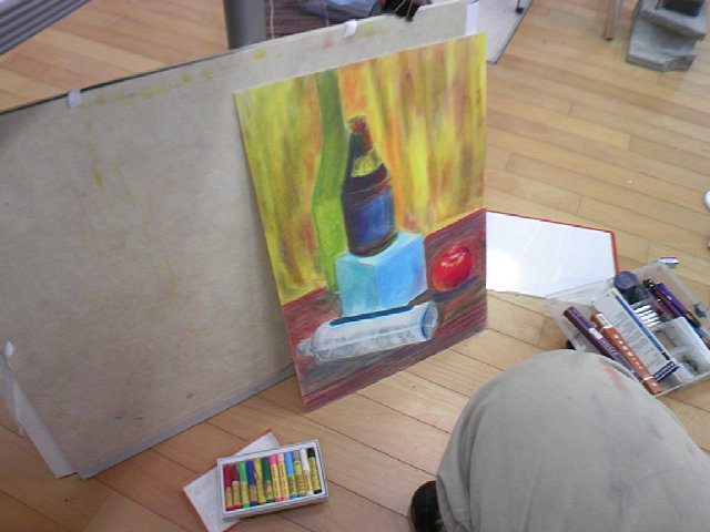 しかし周りは油なんかやらずにアクリルやら水彩やらで一人油臭排出して描いてるもんだから窓開けたりして寒いことこの上なし。